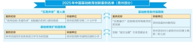 近日,2025年中国基础教育创新案例评选结果公布,此次评选遴选出十大类别共200个基础教育创新案例,其中区域案例100个、学校案例100个,贵州4个案例入选。