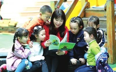 | 贵阳第五幼儿园 (方舟分园) 老师组织孩子们小组阅读。 |