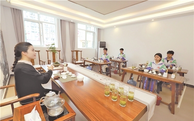 | 听障学生在学习茶艺。黄蜀锦 摄 |