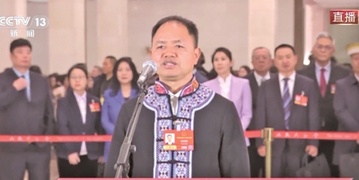3月5日上午,十四届全国人大四次会议首场“代表通道”在人民大会堂举行,全国人大代表、云南省文山州广南县落松地小学教师农加贵在“代表通道”上讲述了自己的教育故事。