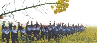 此时的旺草,万亩油菜花竞相绽放,金色的花浪随风翻涌,与远处的青山、错落的村舍构成了绝美的春日田园风光。师生们走进“春花村市”,沉浸式欣赏春日田园风景,感受乡村振兴的崭新面貌。