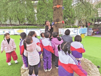 上道幼儿园小班幼儿开展“为大树枝干添绿叶”活动,在动手操作中感受春天的生机与绿意。
