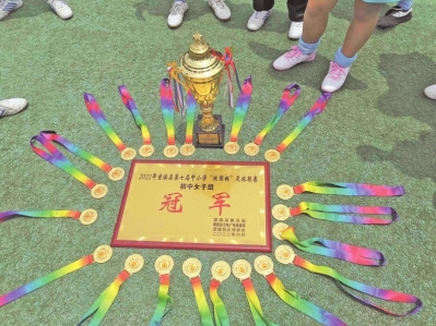 她们没有辜负这片草坪。2019年,女队拿下全县冠军,紧接着又拿下了全州“金州杯”的桂冠。此后的几年,县里的冠军几乎成了新屯中学的“保留项目”。