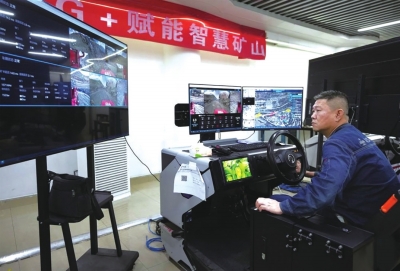 | 在位于攀枝花的攀钢集团矿业有限公司朱兰铁矿分公司5G操控大厅里,矿工在智控座舱中通过5G网络远程操控矿山机械采矿 (2025年7月9日摄)。新华社记者 江宏景 摄 |