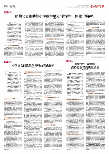 结构化思维助推小学数学单元“教学评一体化”的策略