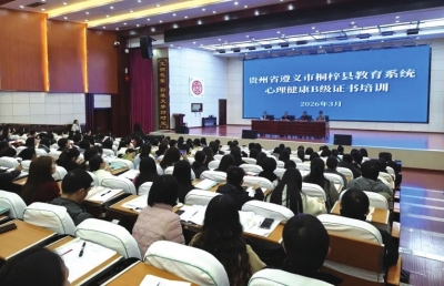 本报讯 (记者 李秀锦 特约通讯员 杨帅锋)3月26日至28日,遵义市桐梓县心理健康教育能力提升 (B级证书) 培训班在桐梓县第一中学成功举办。来自全县各中小学、幼儿园的500名班主任齐聚一堂,通过为期三天的沉浸式、系统化学习,共同探寻学生心灵成长的密码,为守护学生心理健康蓄力储能。