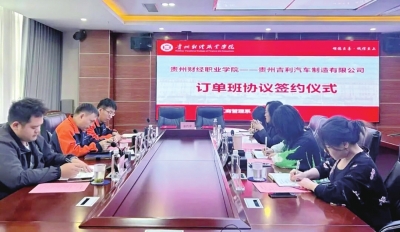 本报讯 (特约通讯员 王爽)近日,贵州财经职业学院工商管理系与贵州吉利汽车制造有限公司正式签署“吉利汽车订单班”校企合作协议。此次签约标志着双方校企合作由机制共建迈向实质性落地阶段,开启了校企协同育人、精准育才的新篇章。