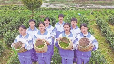 “一芽一叶、一芽二叶……提采、勿掐采……”讲解员耐心细讲,学生们一边听一边触摸那缕春天的色彩。煎茶镇初级中学的学子们率先奔赴山野,开启一场与自然的亲密对话。学生们踏着青春的步伐,沿途的青山绿水为他们打开鲜活的课堂。