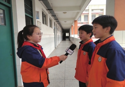 | “小记者”谭欣妍正在对同学进行采访。 |