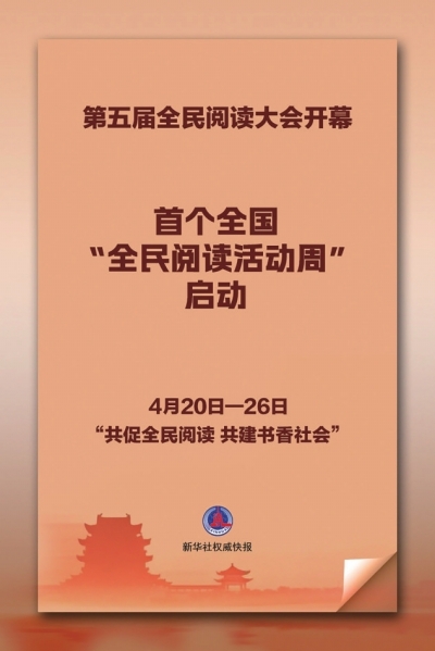 新华社电 为扩大全民阅读辐射面和影响力,营造爱读书、读好书、善读书的浓厚氛围,扎实推进书香社会建设,第五届全民阅读大会4月20日在江西南昌开幕,首个全国“全民阅读活动周”启动。